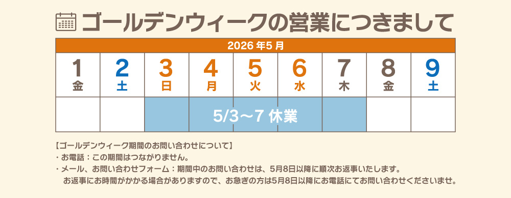 ※上記番号は受付用ダイヤルの為、折り返しのご連絡時は電話番号が異なる場合がございます。