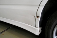 | ドアの下部(端)でしたので、鈑金修正にて対応しました。 歪みも残らずキレイに仕上がったと思います。 途装に関しては、隣接パネルへのボカシ途装により色ズレ の無いように仕上げました。 |